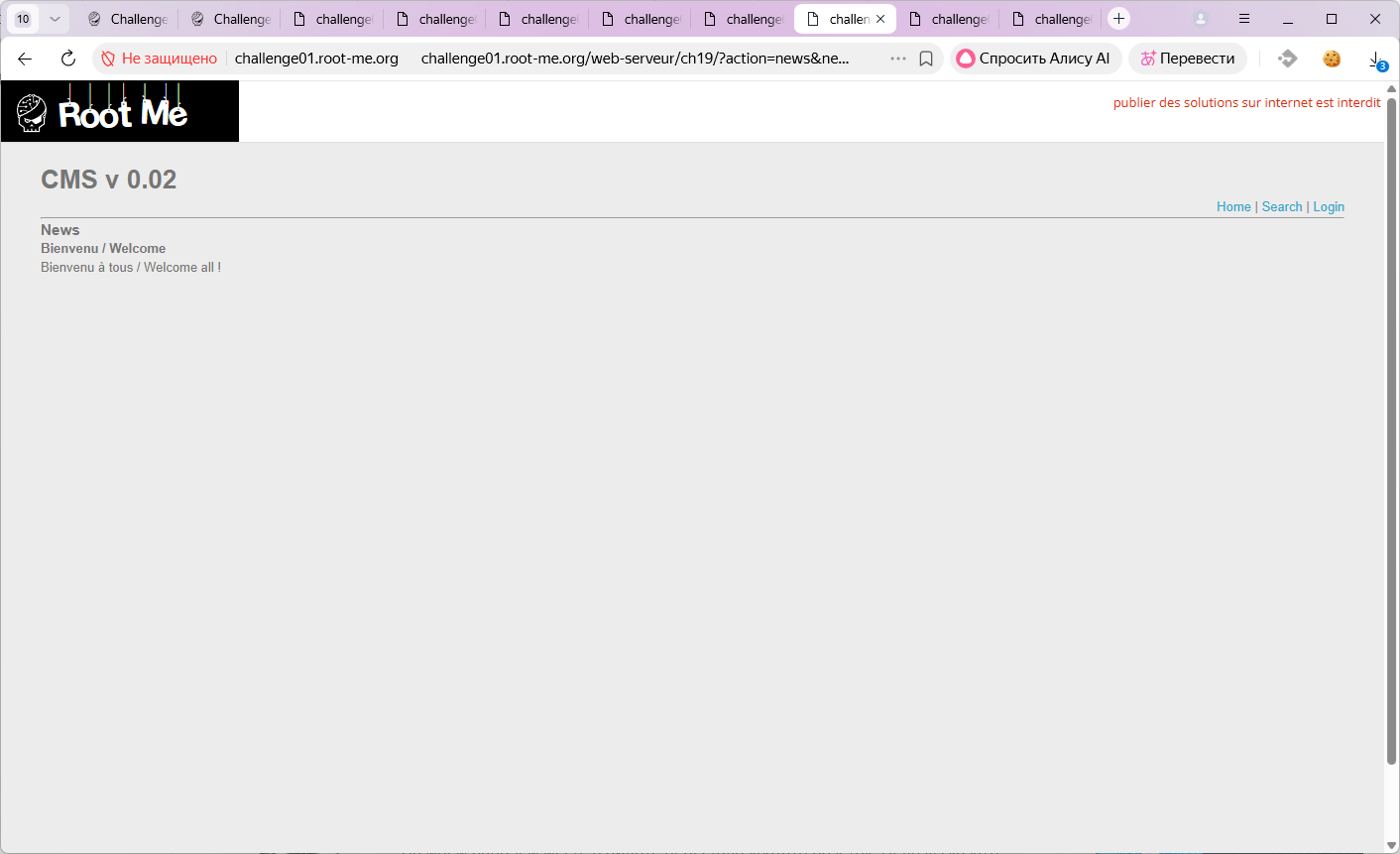 Попадает на сайт с некоторой CMS. На домашней странице какие-то краткие новости.