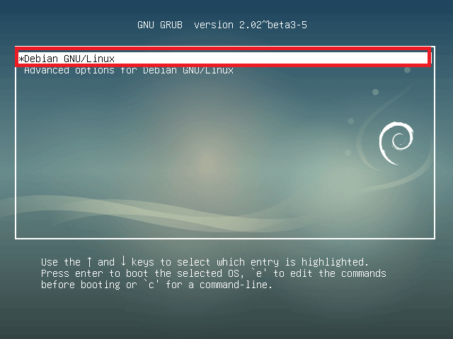 Перезагружаем сервер с Debian. Дожидаемся когда появится окно Grub.