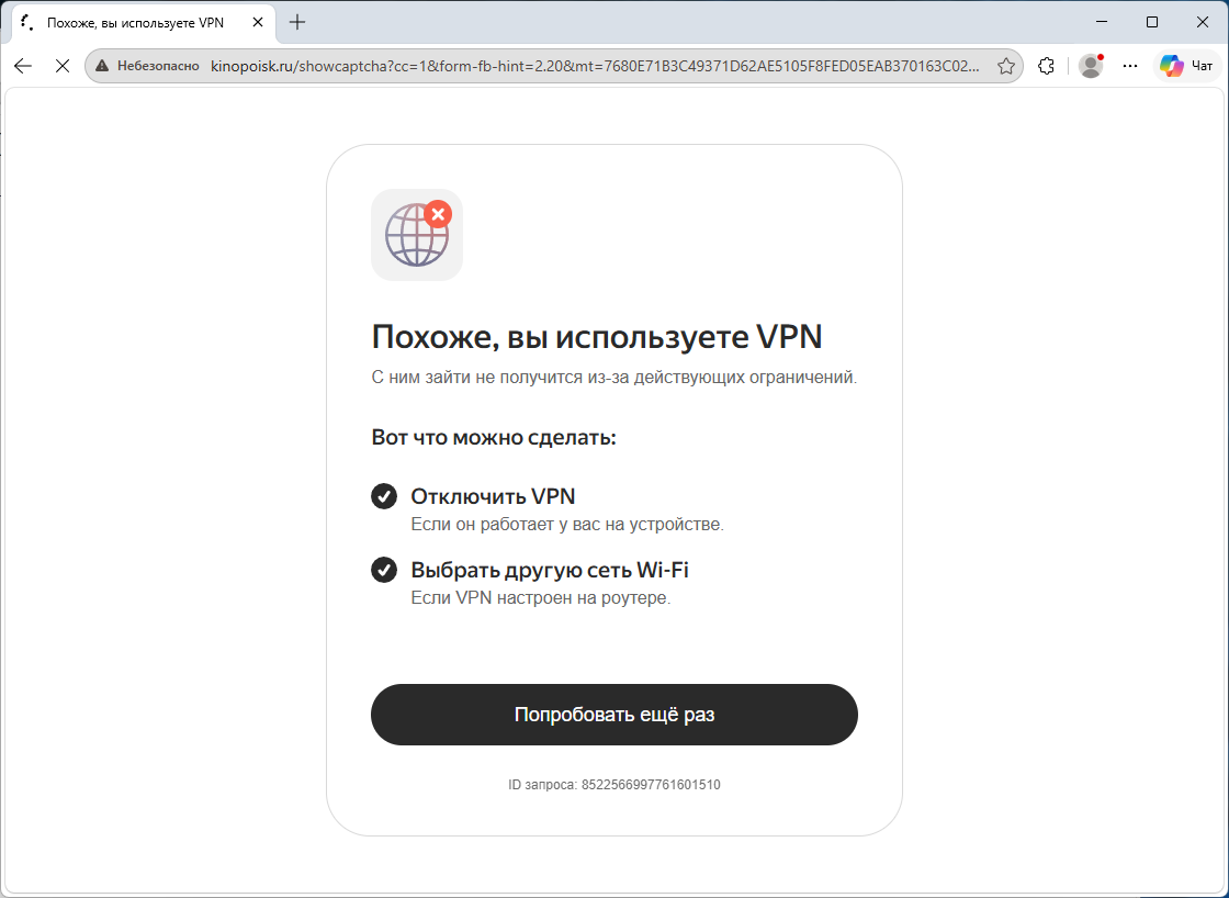 Различные российские сервисы частично перестают работать при включённом VPN. При запуске некоторых приложений или сайтов может отображаться предупреждение вида "Включен VPN. Данные могут не отображаться".