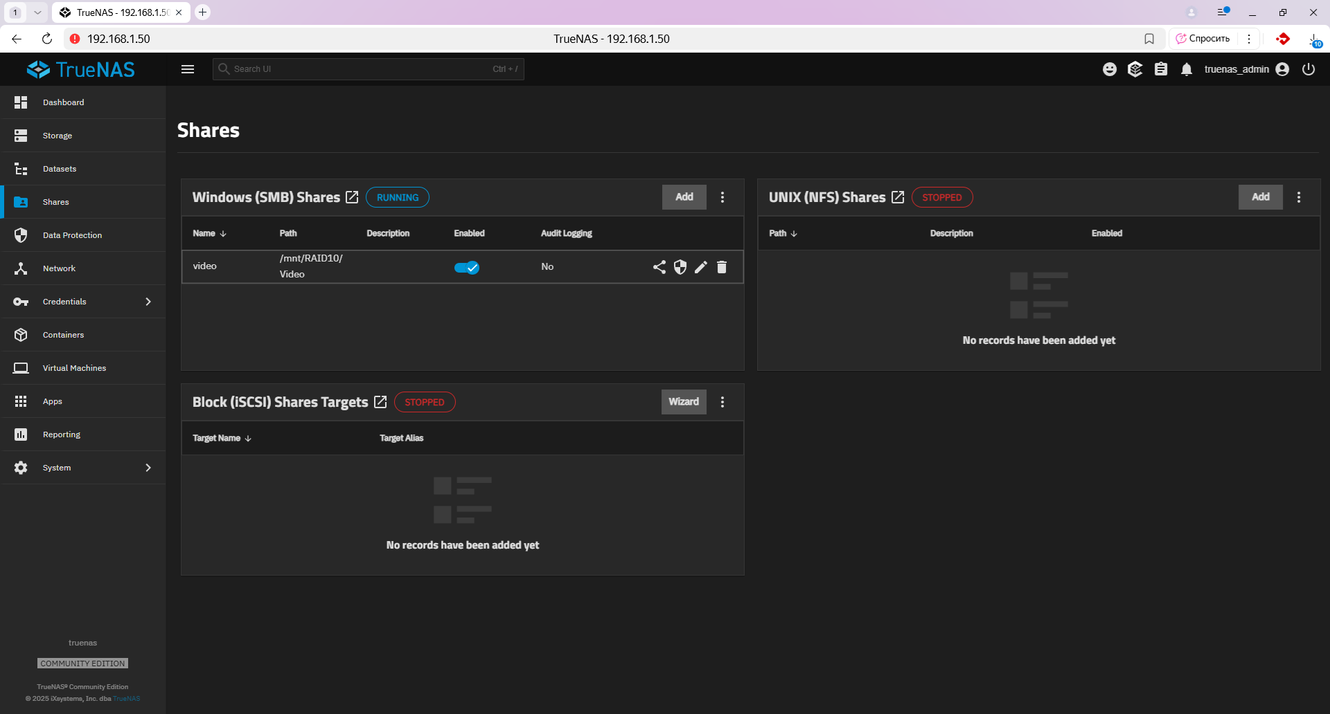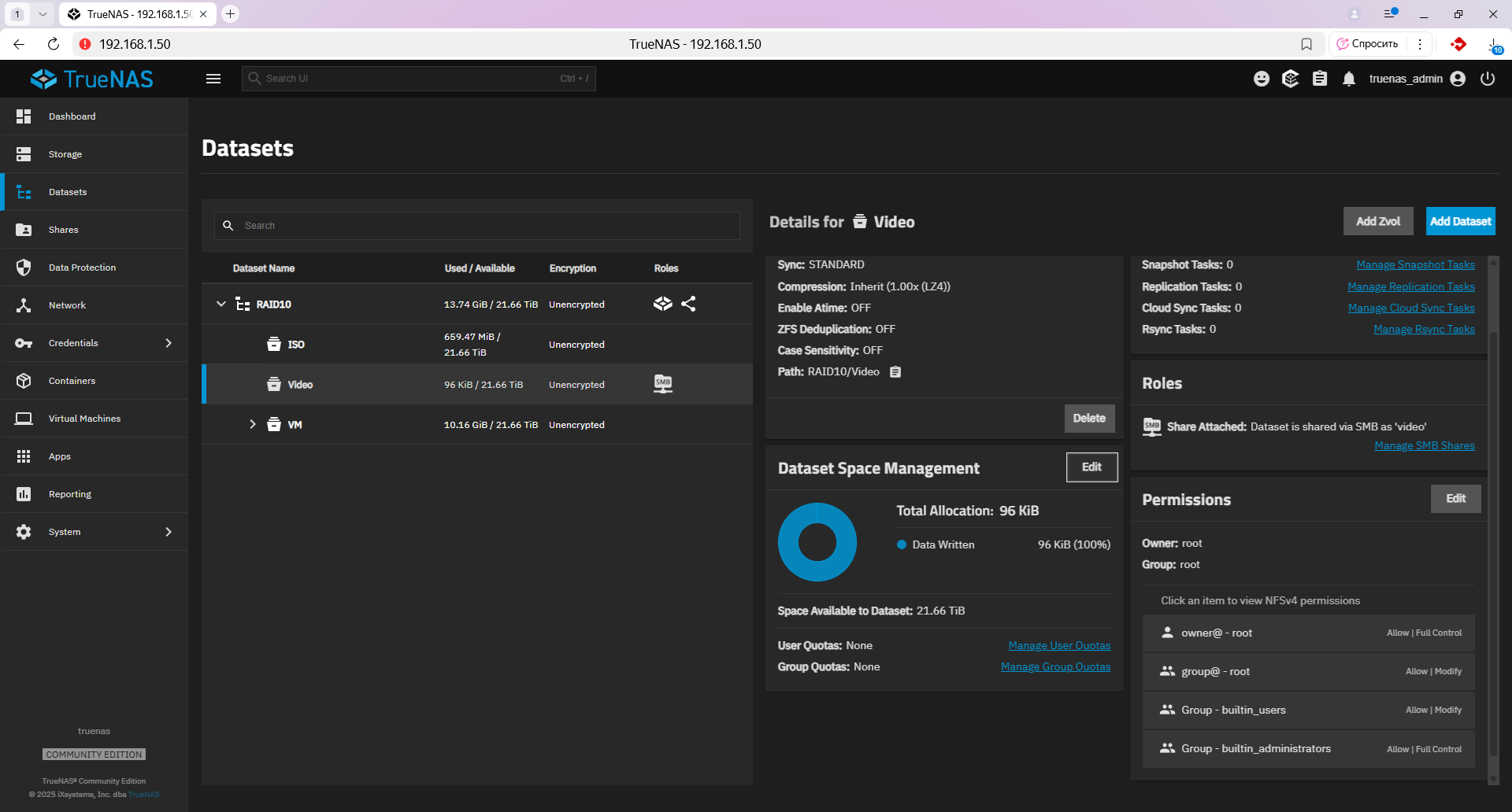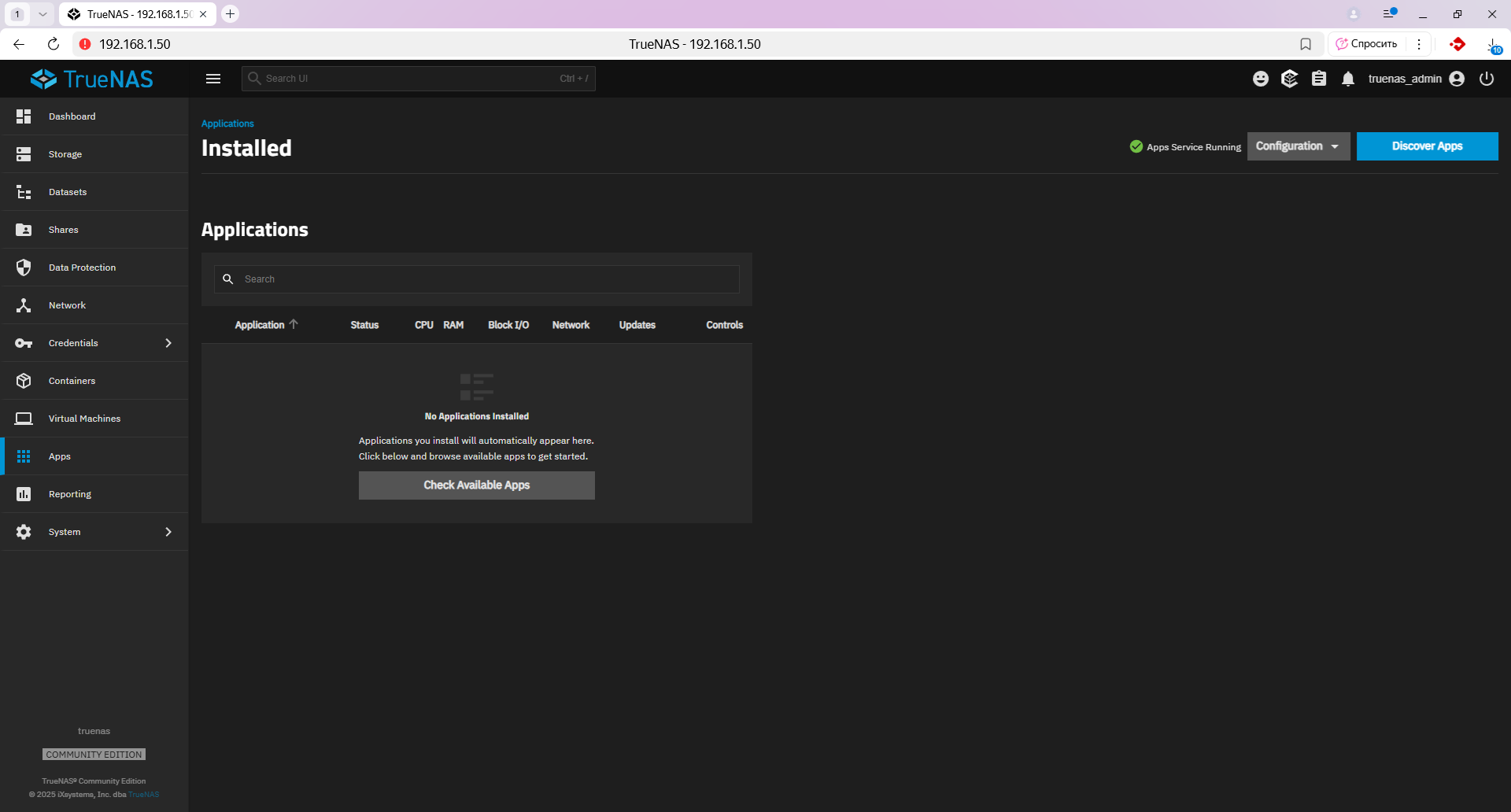Теперь планирую развернуть всё то же самое, но уже на новом NAS с оболочкой TrueNAS.