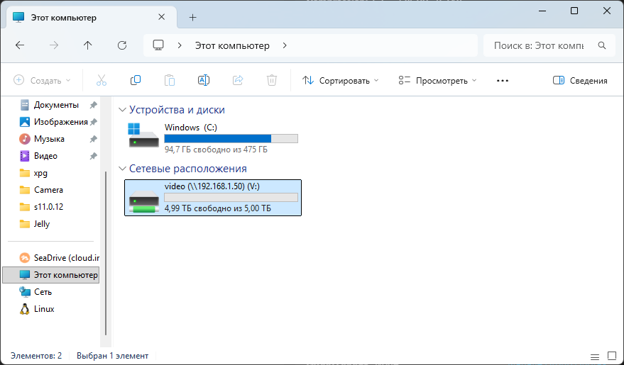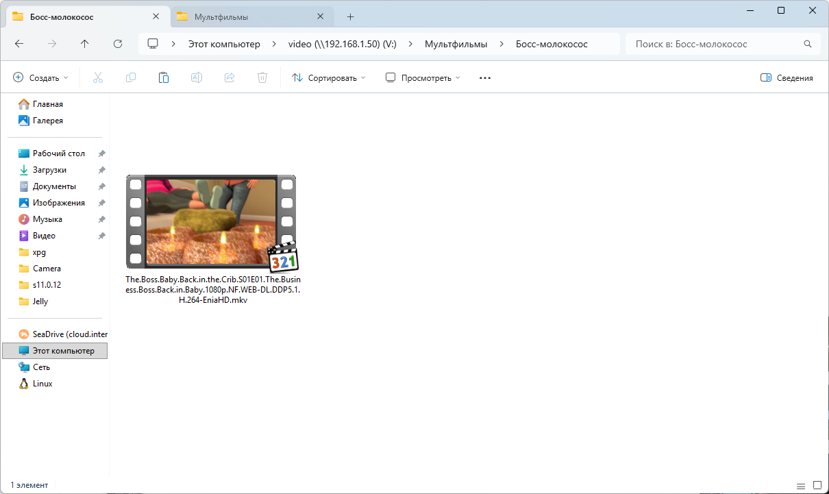Так значительно лучше, теперь сетевой диск нужного объёма. Загрузим в него какой-нибудь фильм.