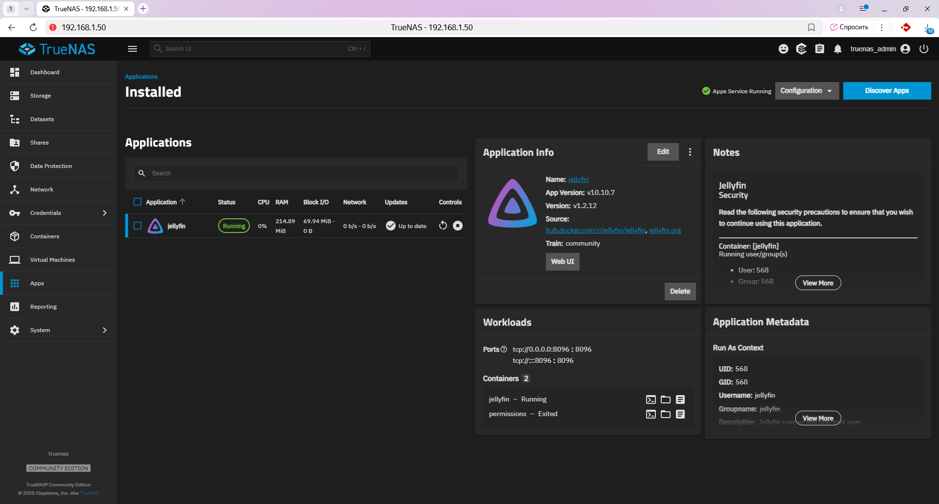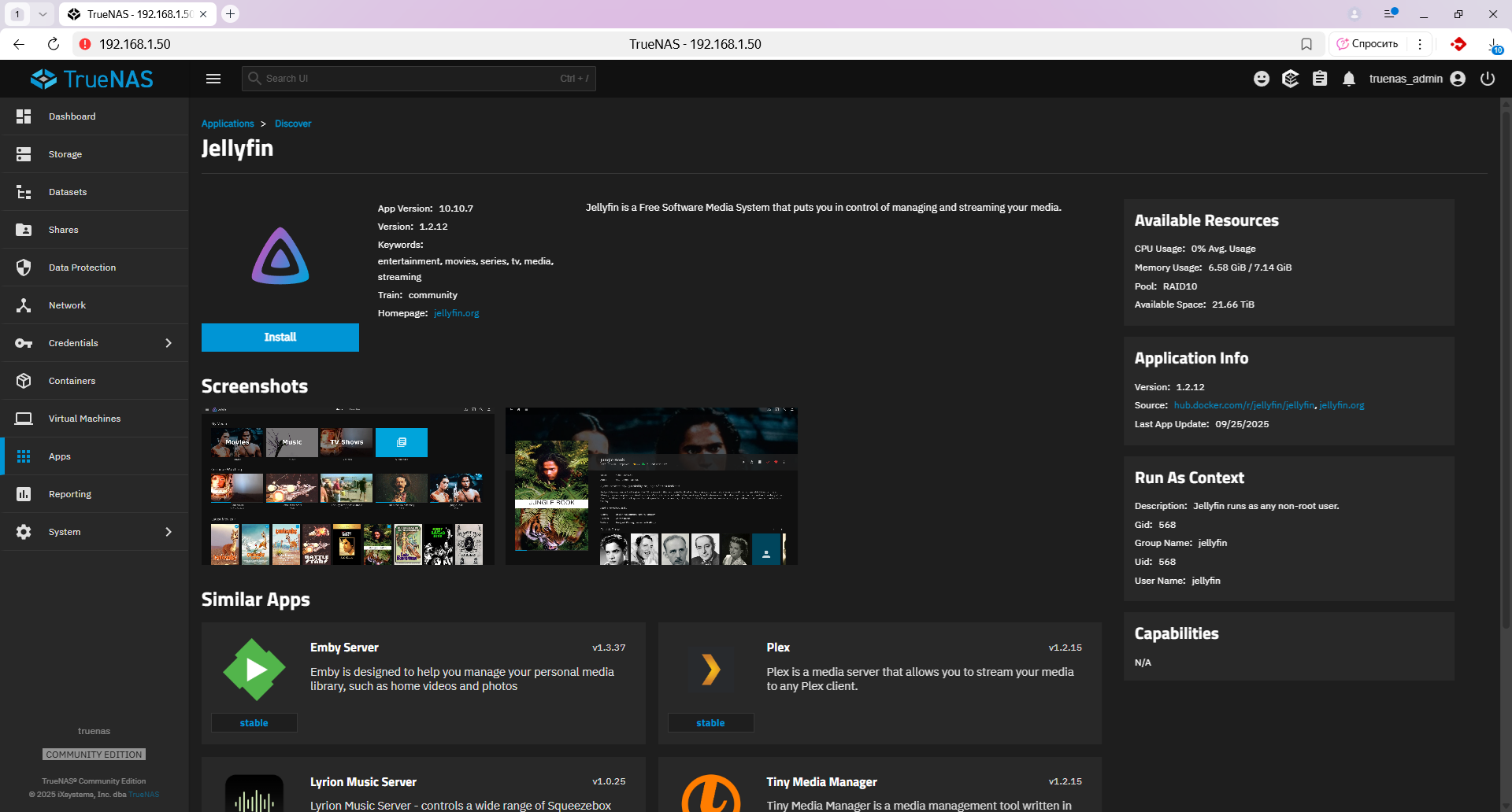 Продолжаю переносить свои домашние сервисы на TrueNAS. Сегодня разворачиваем Jellyfin.