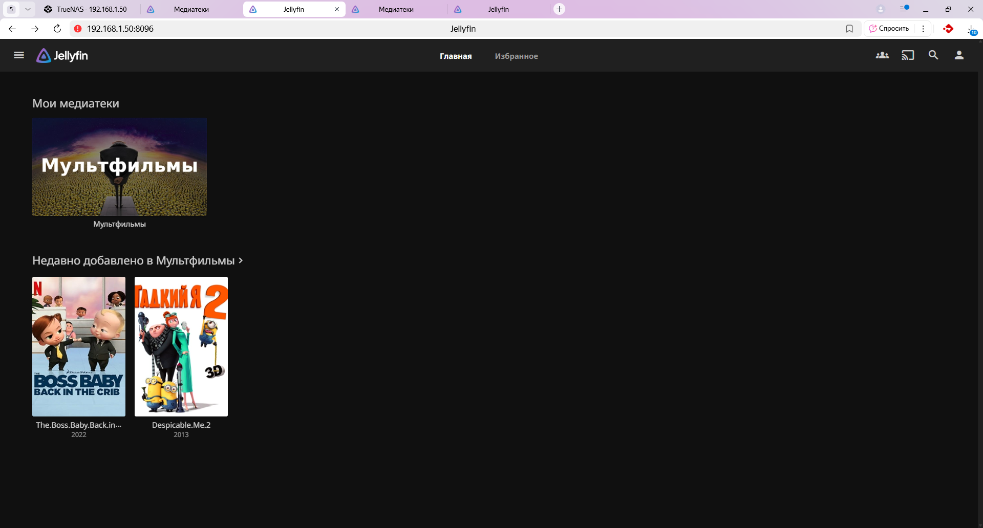 Так легко и непринуждённо мы поставить Jellyfin на TrueNAS. Ну как легко, пришлось повозиться, чтобы понять почему Jellyfin не видит загруженные мной файлики и куда ткнуть, чтобы проковырять доступ. А ещё на ноутбуке глюканула сеть и вместо провода пыталась загрузить видосы по Wi-Fi и я никак не мог понять куда делась моя гигабитная сеть...