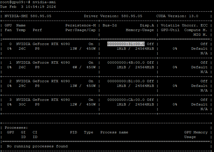 Зная адрес шины проблемного устройства можно по очереди извлекать GPU карты и смотреть, какое из устройств пропало из системы. Метод научного перетыка, так сказать. Естественно, с корректным выключением и включением сервера. Поэтому при планировании работ с GPU серверами сразу планируйте время на несколько разборок-сборок и перезагрузок сервера. Чем больше видеокарт в сервере, там больше времени может понадобиться.