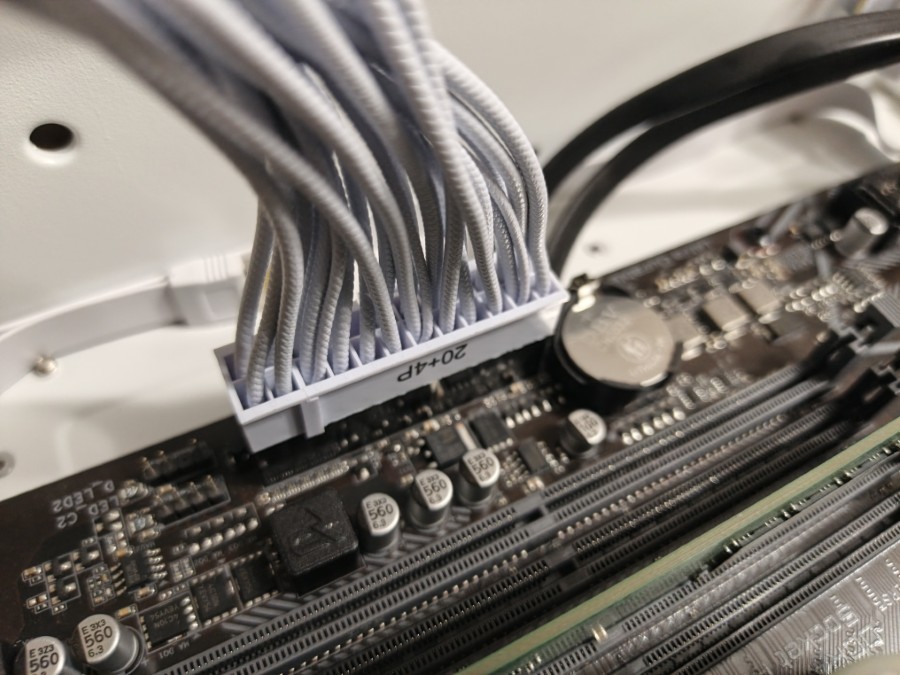Подаём питание на материнскую плату.