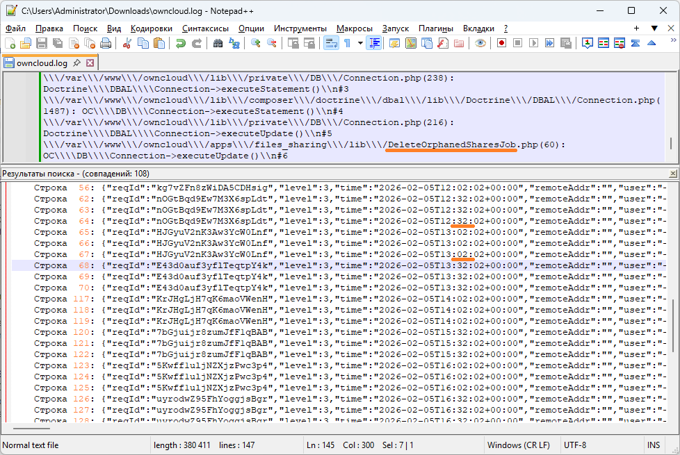 oc_shareиoc_filecache. Фоновое задание DeleteOrphanedSharesJob не может выполнить DELETE-запрос к таблицеoc_share, потому что другие транзакции удерживают блокировки.