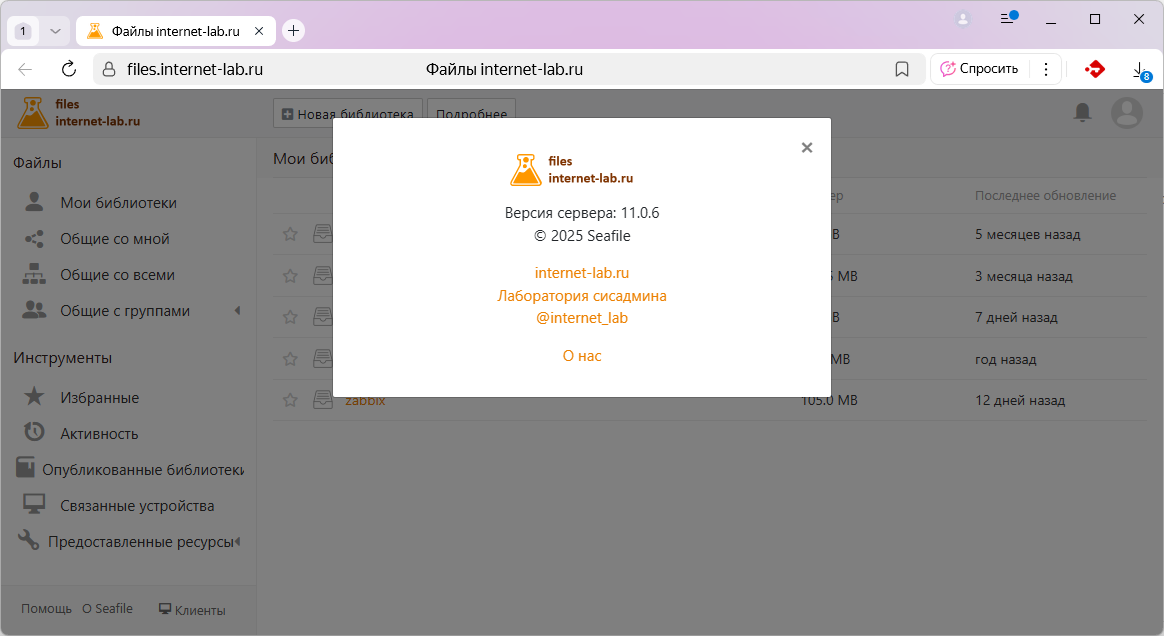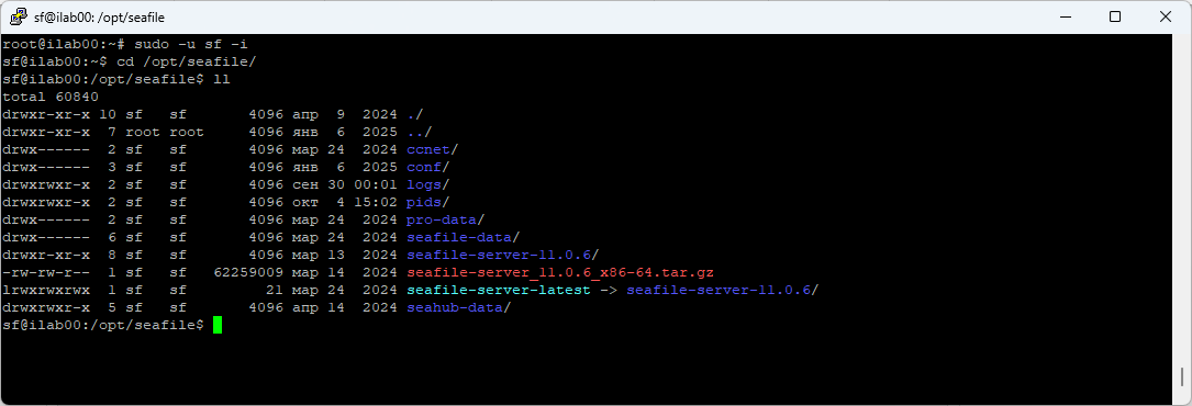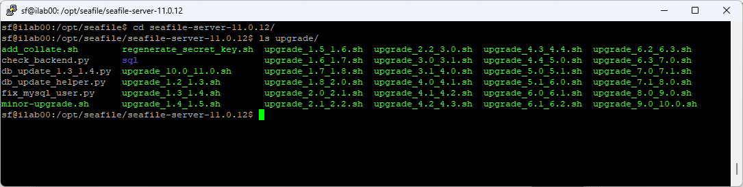 Будем обновлять Seafile Server с версии 11.0.6 до версии 11.0.12. Инструкция по обновлению имеется.