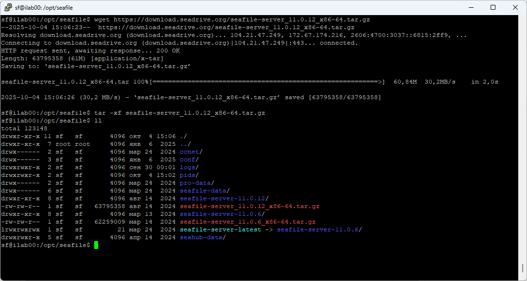 tar -xf seafile-server_11.0.12_x86-64.tar.gz