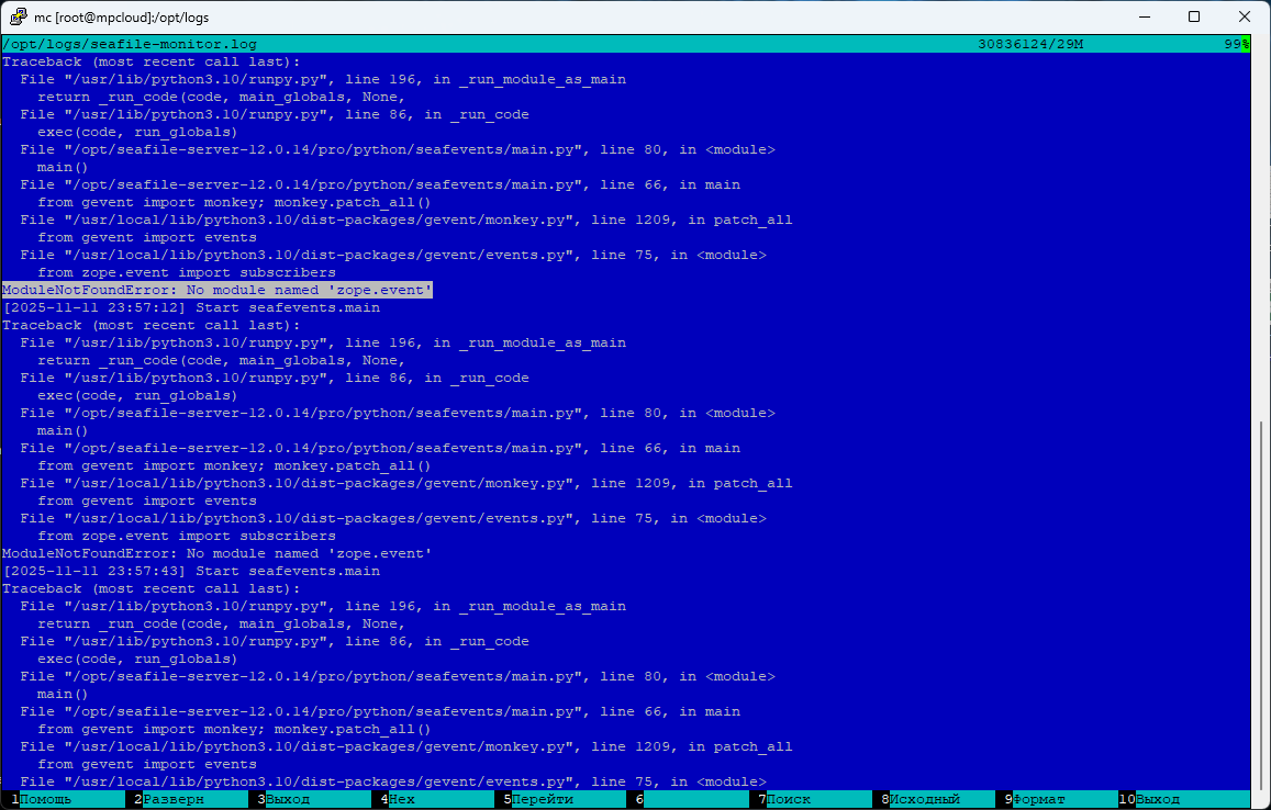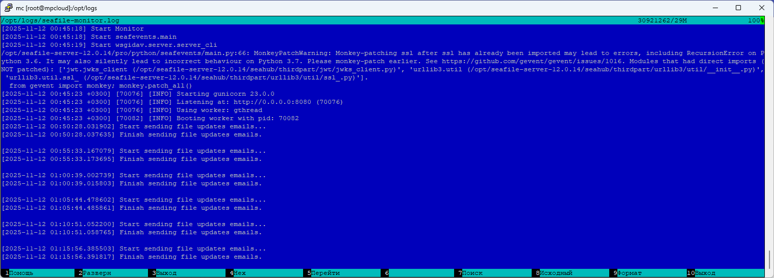 Занимаюсь отладкой и приведением в порядок Seafile после апгрейда до 12 версии. В логе seafile-monitor.log вижу ошибку: