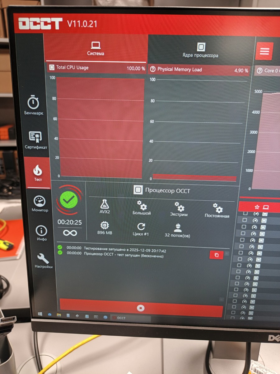 5 ГГц, 20 минут работает без проблем. Оставляем на ночь. Если утром ошибок не будет, можно выключить, собрать корпус, установить дверь и отдавать заказчику.