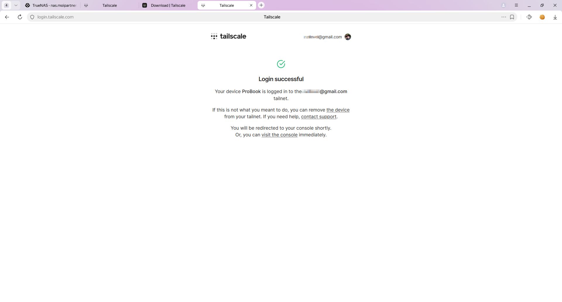Залогинились в личный кабинет на сайте Tailscale. Пока я думал куда нажимать дальше, произошёл редирект.
