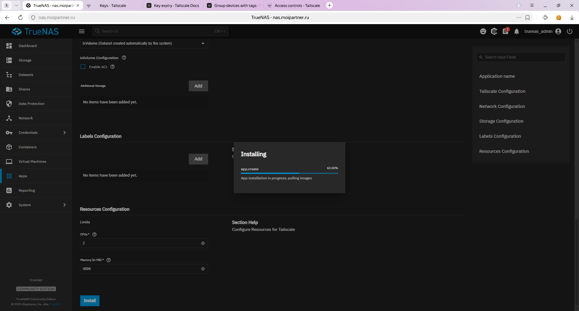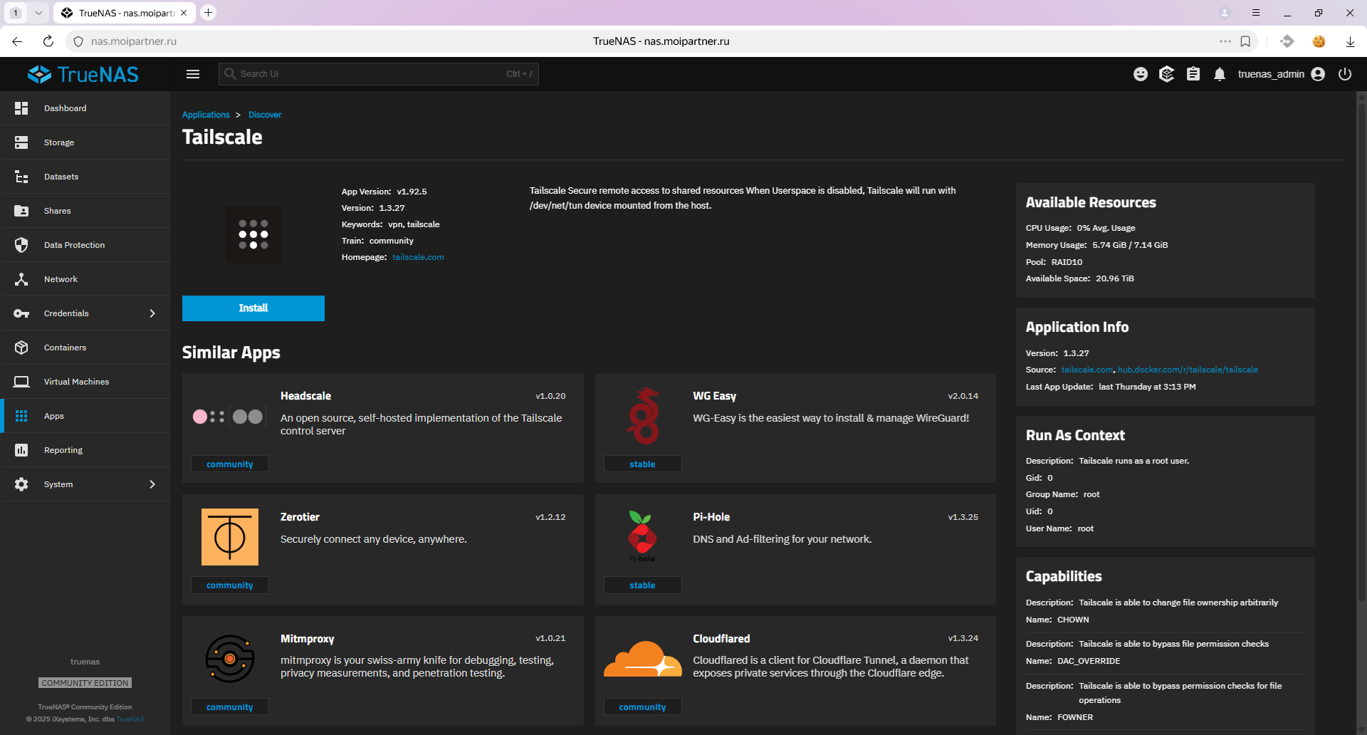 И сегодня мы развернём Tailscale. Потыкал в него и развернул себе на несколько минут удалённый доступ к TrueNAS и домашним сервисам.