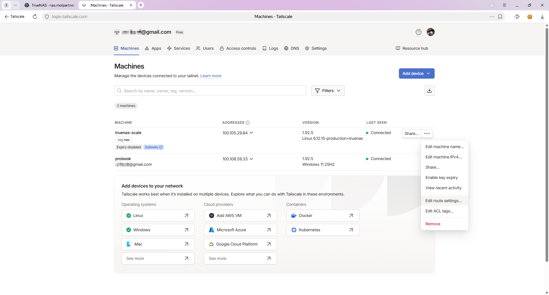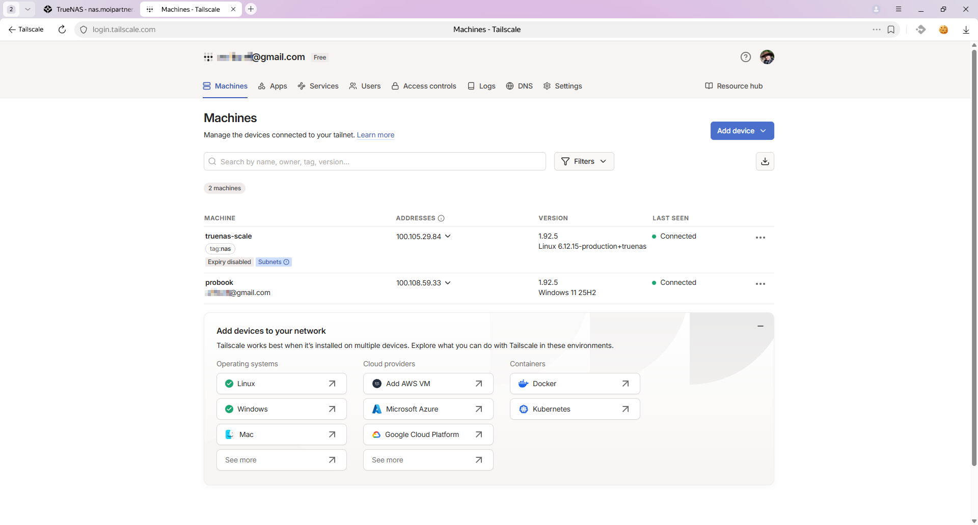 Tailscale — отличный способ организации защищённого соединение к вашему домашнему TrueNAS и другим домашним сервисам. Даже без настройки переадресации портов на роутере.