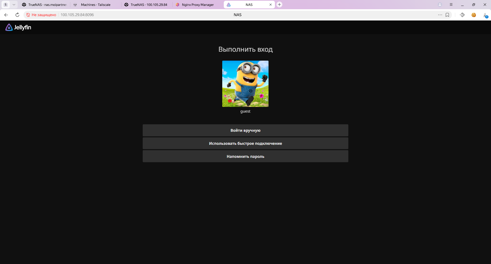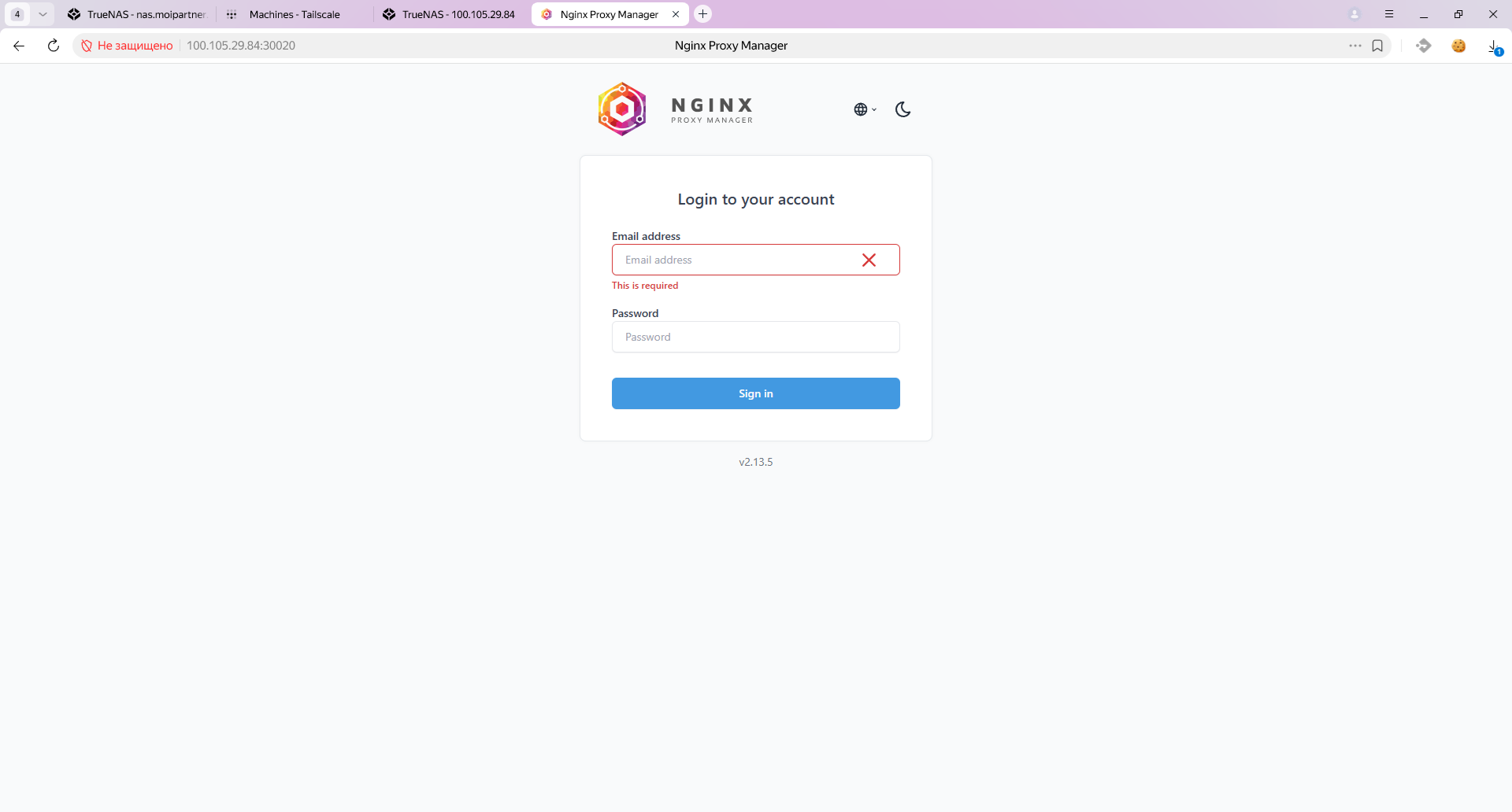 Другие сервисы на том же IP, которые живут на TrueNAS, тоже работают, тот же Nginx Proxy Manager.