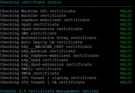 service-control --stop --all && service-control --start --allПроверяем сертификаты снова с помощью vCert.