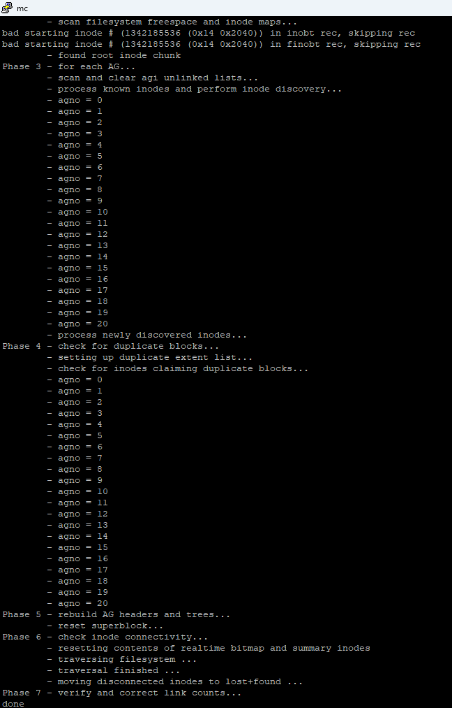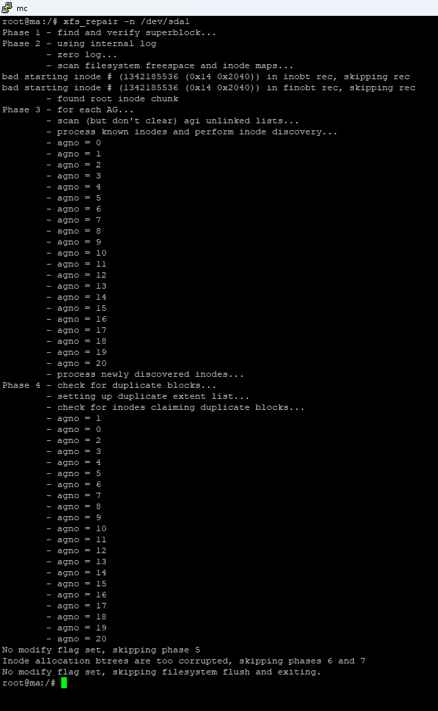 Inode allocation btrees are too corruptedПробуем исправить: